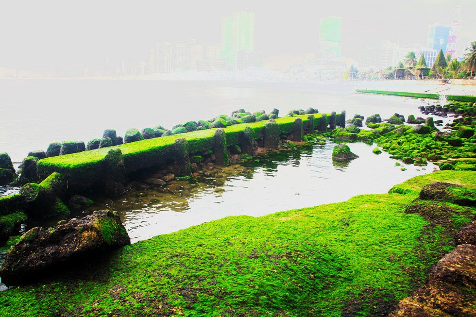 Nếu Phú Yên có bãi đá rêu Xóm Rế thì Nha Trang có bãi đá Rêu nằm ngay bờ biển Trần Phú rất thu hút khách tham quan và người dân địa phương check in tại đây. Bãi đá Rêu Nha Trang với mô hình đá đa dạng hình cây cầu, hình chữ thập, hình con heo, hình con ngựa được nhuộm màu rêu xanh ngắt càng nhìn càng thấy cảnh sắc nơi đây rất đã mắt.