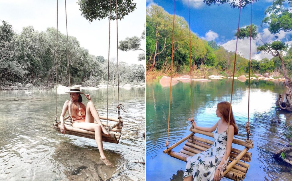 Chụp hình sống ảo tại suối Ba Hồ